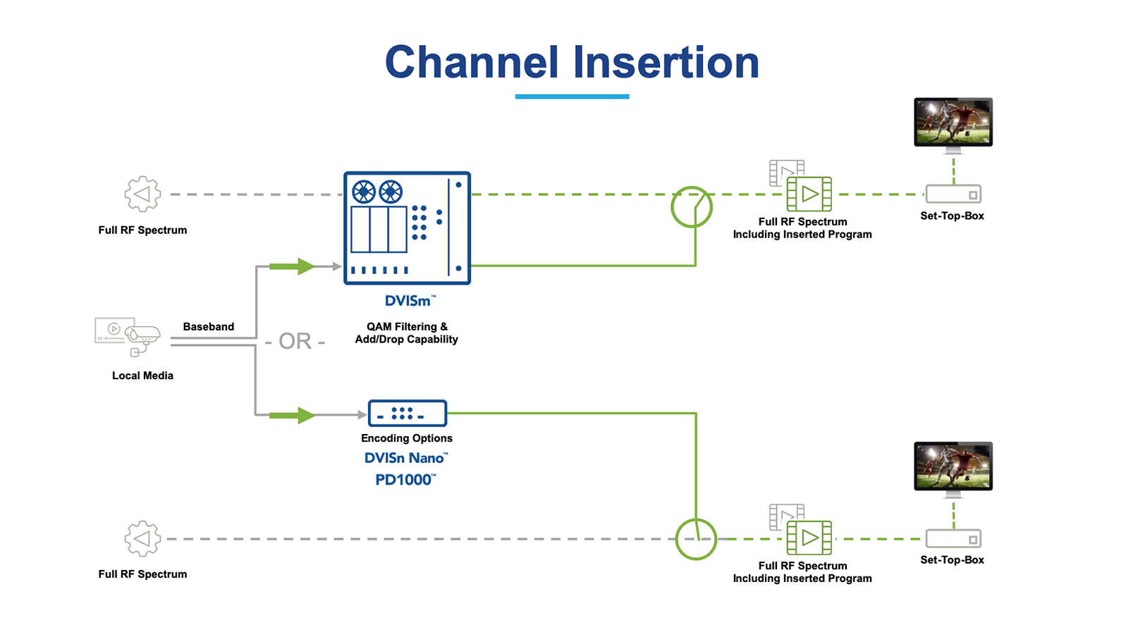 MSOs are further challenged by a lack of solutions that offer the performance and flexibility required to cost-efficiently meet the needs of their commercial accounts. Existing channel insertion solutions often fall short in terms of scalability, functionality, energy efficiency and ease-of-use, all attributes essential to a profitable channel insertion offering.