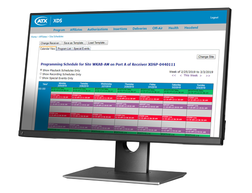 - Schedule network or localized programs for a specific site